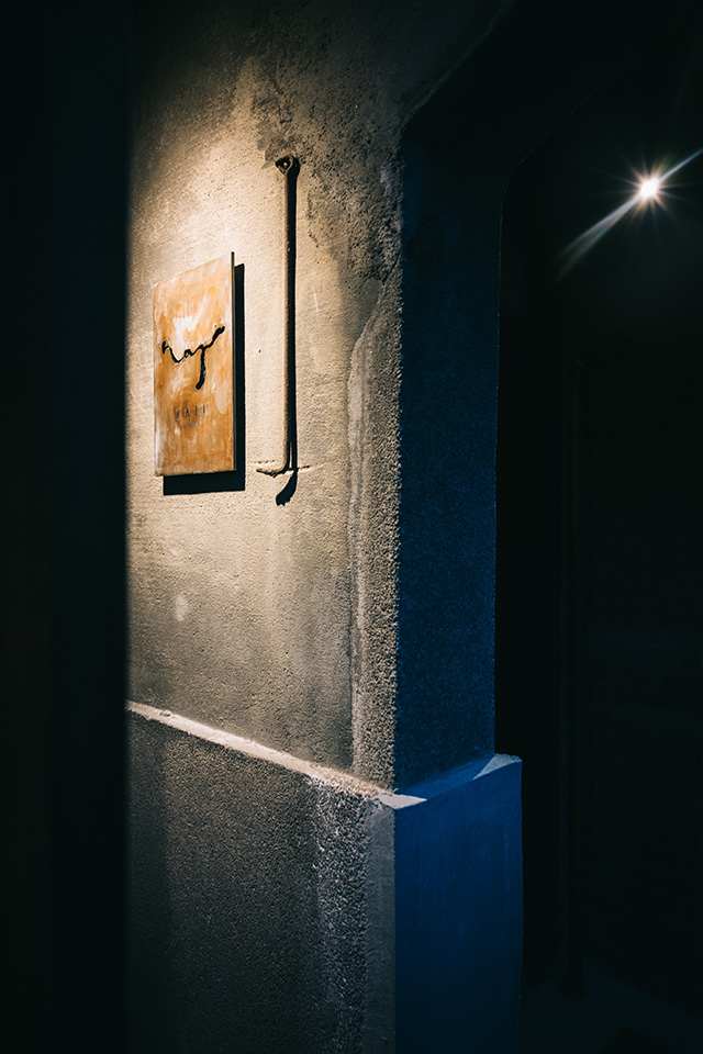 Natural materials such as clay, bricks, and wood are used, and the counter was tailored by a plasterer. The kitchen and the seating area are fused together in a small space, creating a sense of realism and a close proximity between the chef and the guest. The restaurant has a very authentic atmosphere.